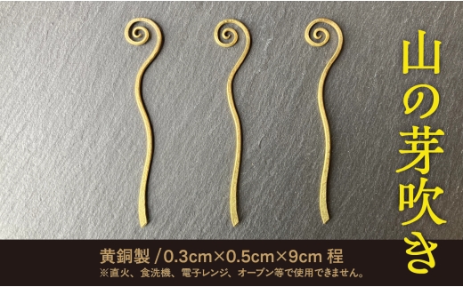 - 【金属工芸品】早蕨のフルーツピック 3本セット 【ブーケ】 黄銅製 いずれも約9センチ カトラリー キッチン ようじ 楊枝 おしゃれ ピック