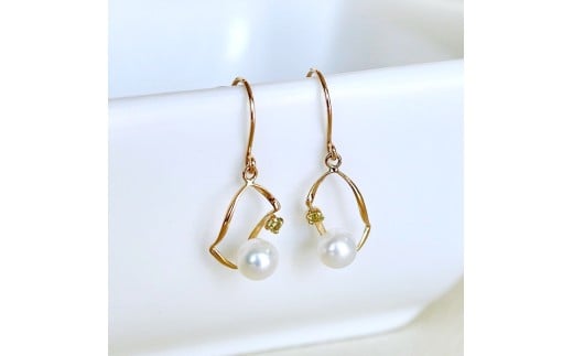 K10YG(10金) イエローゴールド 揺れる ペリドット&パール ピアス 保証書付 G-034 242-044-e