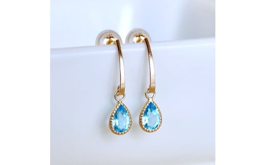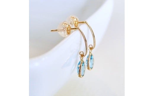 - K10YG(10金) イエローゴールド 揺れる ブルートパーズ アンティーク ピアス 保証書付 SR-2223-1 242-043-d