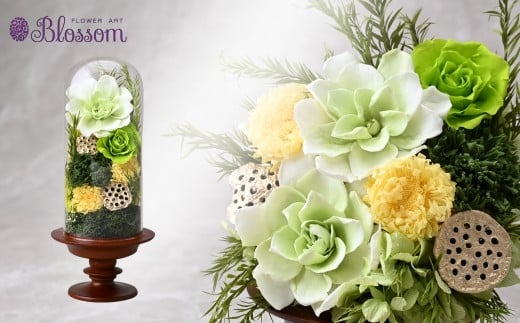 プリザーブドフラワー 仏花(ガラスドーム)<グリーン> | プリザーブドフラワー 仏花 花 お花 仏壇 お供え 法事 ギフト 贈答用 ケース入り 枯れない 長持ち 水替え不要 水やり不要 お手入れ不要 簡単 楽 保存 保管 コンパクト モダン きれい 美しい ブルー 青 ピンク グリーン 緑 水色 紫 フラワーアレンジメント おしゃれ 49日 四十九日 おくやみ 法要 供花 埼玉県 東松山市