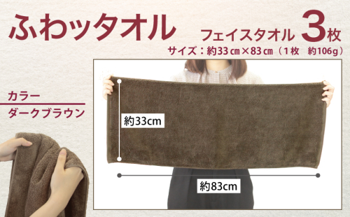 ふわッタオル フェイスタオル 3枚セット(ダークブラウン)【スーパーゼロ SUPER ZERO 泉州こだわりタオル 泉州タオル 国産 吸水 普段使い シンプル 日用品 家族 ファミリー】 099H4045