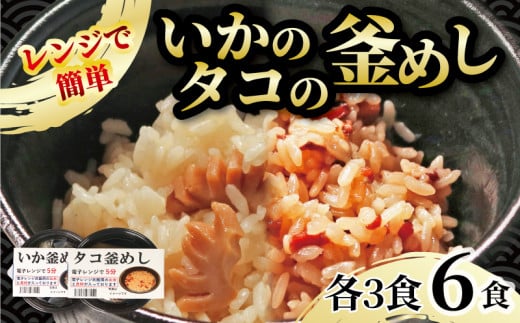 釜めし 6個 いか釜めし3個 タコ釜めし3個 電子レンジ 簡単 手軽 加工食品 魚貝類 海産物 海の幸 いか 烏賊 たこ 蛸 長期保存 防災 備蓄 常温 常温保存 テレビ TV 放送 ニュース 番組 大船渡 大船渡市 三陸 岩手県