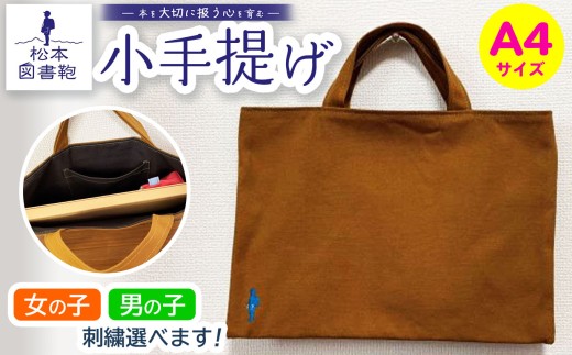 松本図書鞄 小手提げA4(土色/裏地濃鼠)男の子 | 図書袋 図書鞄 バッグ トートバッグ A4 お買い物 散歩 布 学校 小学生 本 図書館 長野県 松本市 ふるさと納税