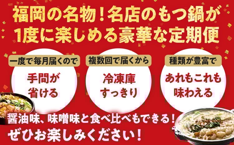 定期便 もつ鍋 グルメ 定期便 約4人前 通年 6回 6ヶ月 食べ比べ 頒布会 醤油 味噌 若杉 おおやま 楽天地 やまや もつ鍋 国産 牛 小腸 定期発送 冷凍 グルメ 福岡グルメ 牛肉 牛もつ鍋 鍋 鍋セット みそ スープ付き ホルモン もつ 冬 お取り寄せ