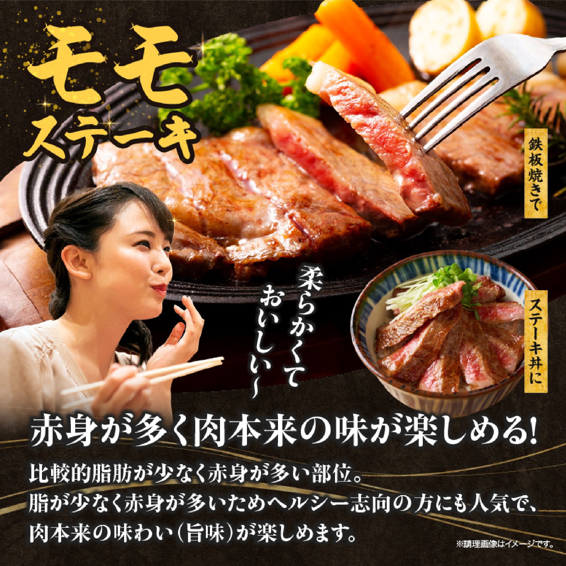 【お試し限定品】宮崎県産黒毛和牛モモステーキ3枚セット(牛肉 肉 ステーキ 黒毛和牛 数量限定 赤身 モモ 宮崎 宮崎県)