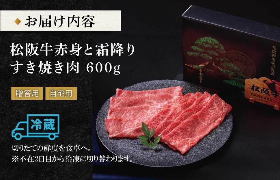 松阪牛 赤身と霜降り すき焼き 600g < 冷蔵 > 牛追道中 肉 牛 牛肉 和牛 ブランド牛 高級 国産 霜降り 肩ロース 肩 カタ US27
