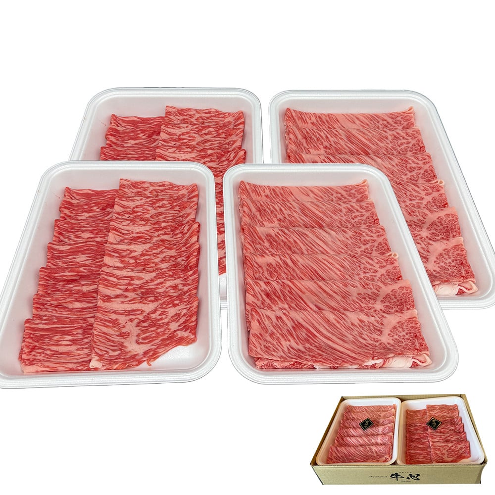 - A4等級以上 宮崎牛赤身・ローススライス食べ比べ 1.6kg (400g×4) 内閣総理大臣賞 牛肉 和牛 黒毛和牛 ブランド牛 宮崎牛 和牛 国産 赤身スライス モモ ロース ロース肉 スライス肉 食べ比べ A4 A5