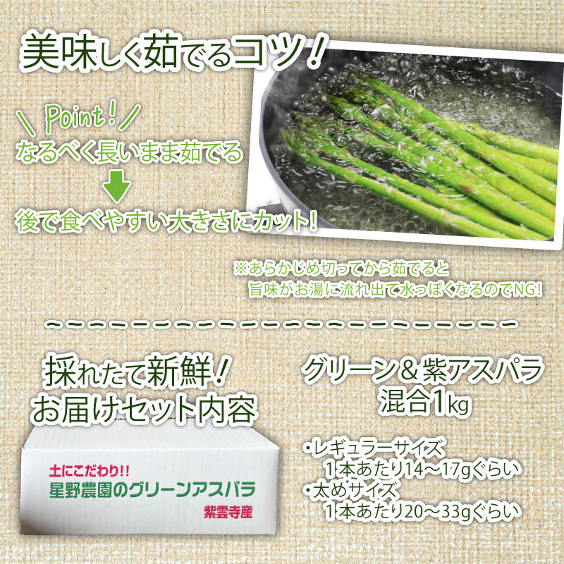 【生でも食べられるみずみずしさ!!】アスパラ【先行予約】 令和8年産 アスパラ 新鮮 朝採り 1kg アスパラガス サイズ レギュラー 紫 太め 混合 朝採れ 新鮮 甘い 柔らかい 肉 巻き ベーコン 巻き お弁当 弁当 特産品 野菜 旬 旬の野菜 期間限定 数量限定 野菜 春野菜 星野農園 新潟 新潟県 新発田産 新発田市 hoshino002