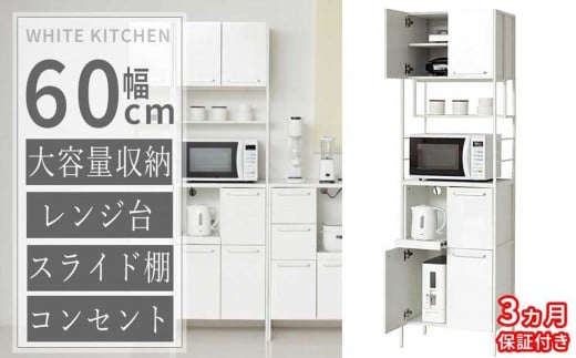 - [3ヶ月保証付き]食器棚 ホワイト 幅60 高さ200 大容量 コンセント付き AKU105657291