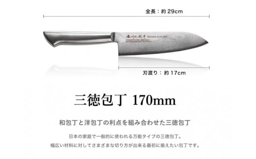 料理用包丁 「翔 Damascus」 切付三徳180mm【1127997】
