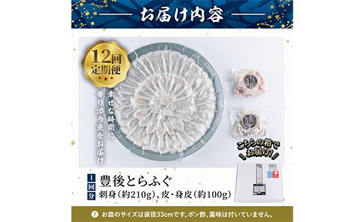 <定期便・全12回 (連続)> 豊後 とらふぐ 刺身 セット (総量約3.7kg:4-5人前×12回) とらふぐ ふぐ フグ ふぐ刺し フグ刺し ふぐ刺身 フグ刺身 刺身 鮮魚 冷凍 養殖 国産 大分県 佐伯市 【AB199】【柳井商店】