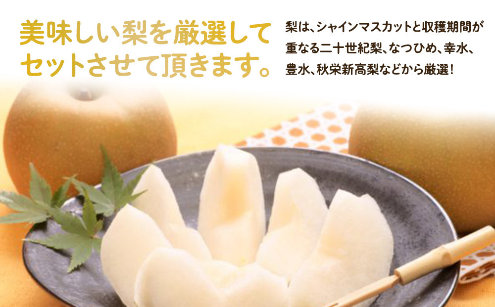 955.【先行予約】【訳あり】シャインマスカット(350g前後)と旬の梨(5玉)セット≪ぶどう、マスカット、ブドウ、葡萄、なし 果物 フルーツ くだもの 鳥取県北栄町≫※8月下旬頃~9月中旬頃に順次発送 313726_AN001