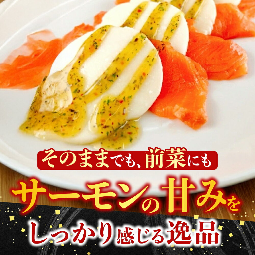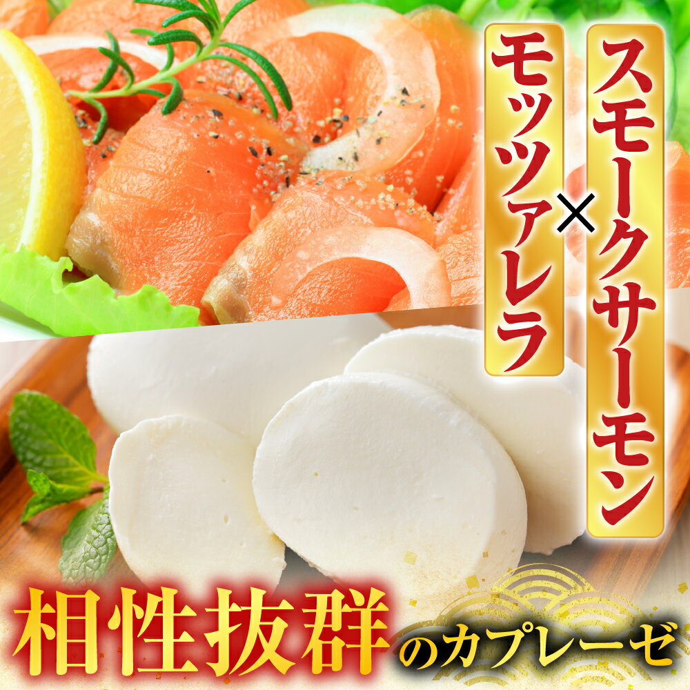 - 【ふるさと納税】 スモークサーモンのカプレーゼ 1kg ( 小分け真空 ) 鮭 さけ サケ しゃけ シャケ 魚 さかな サカナ グルメ 海鮮 北海道牛乳 モッァレラ モッァレラチーズ チーズ バジル 燻製 くんせい 北海道 根室市 B-09082