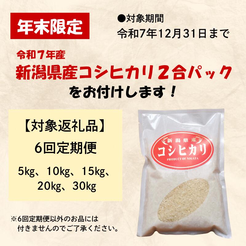 - 【ふるさと納税】令和7年 新潟県産コシヒカリ 5kg 10kg 15kg 20kg 30kg 5キロ 10キロ 15キロ 20キロ 30キロ 定期便 1回 3回 6回 毎月発送 米 白米 精米 定期便 送料無料 お届け:2025年10月中旬~2026年9月下旬まで