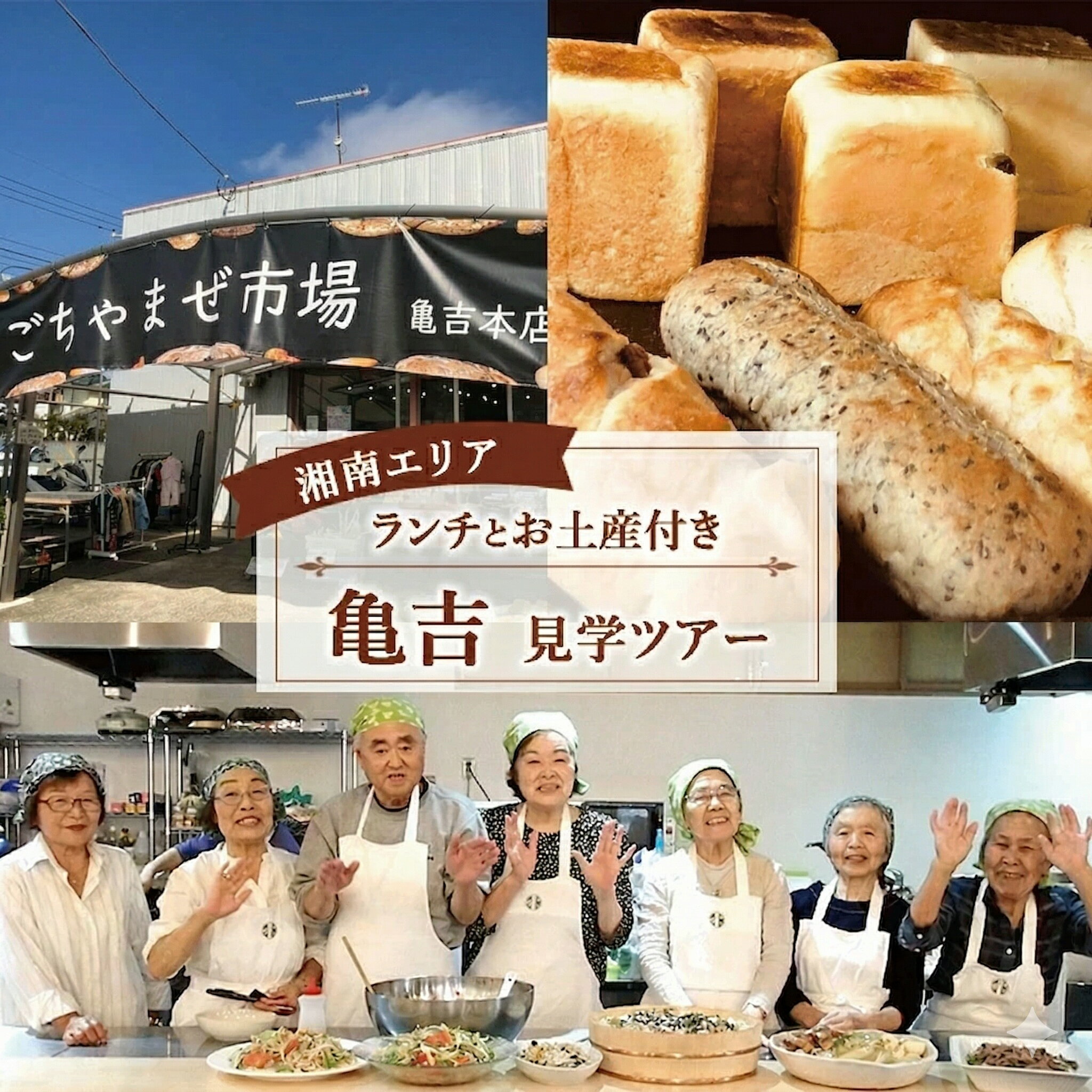 - 【ふるさと納税】 湘南 ツアー 施設見学 パン屋 亀吉 ランチ お土産 付き!! 選べる エリア 見学ツアー 体験 事業モデル 職場見学 お仕事見学 仕事ツアー パン カルチャースクール デイサービス コミュニティー カフェ 弁当 スイーツ 昼食 パン遊房 亀吉 神奈川 湘南 藤沢