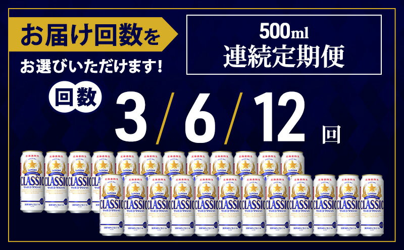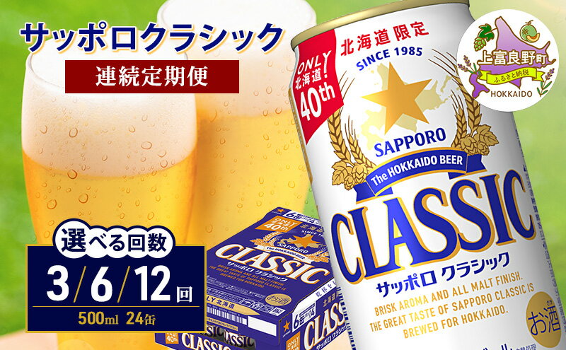 - 【ふるさと納税】サッポロクラシック ビール 定期便【選べる回数】500ml×24缶[3回/6回/12回] 缶ビール お酒 酒 サッポロビール 生ビール 飲み物 ギフト プレゼント お土産 贈答用 家のみ 晩酌 上富良野町 北海道