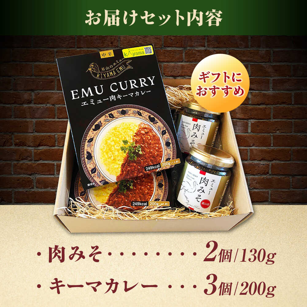 【ふるさと納税】エミューキーマカレー計600g(200g×3個)&肉みそ計260g(130g×2個) / 惣菜 カレー 味噌 肉 希少 / 佐賀県 / 株式会社きやまファーム[41ALAA003]