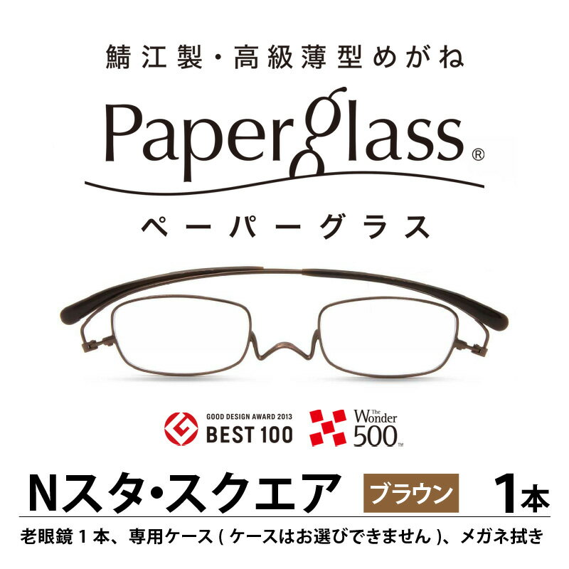 【ふるさと納税】鯖江製・高級薄型めがね『Paperglass(ペーパーグラス)Nスタ』スクエア [D-05707] / ブラウン 老眼鏡 携帯用ケース付き 薄型 メガネ拭き付き 軽い コンパクト 男性 女性 メンズ レディース リーディンググラス