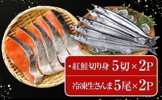 - A-36017 甘塩紅鮭5切×2P、冷凍生さんま5尾×2P