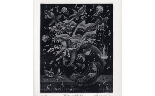 銅版画 ~騒がしい金魚鉢~ (額縁入り) 京都 京都府 井手 井手町 【147】