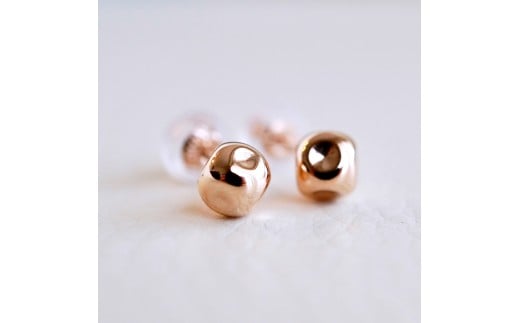 - K18PG(18金) ローズゴールド 地金 サイコロ ピアス シンプル 縁起物 保証書付 KO-0065 242-022-c