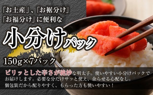 博多 辛子明太子 無着色 特選切子 1050g (150g×7) 小分け 【1月中旬以降発送】| 明太子 切れ子 切子 人気 1kg 辛子明太子 切子 めんたいこ 海鮮 魚介類 つまみ おすすめ お取り寄せ グルメ ご当地 九州 送料無料 福岡市