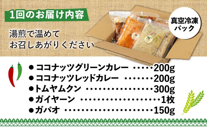 - 【全3回定期便】糸島グルメグランプリ受賞!タイ料理定番5種セット(ココナッツグリーンカレー・ココナッツレッドカレー・トムヤムクン・ガイヤーン・ガパオ) 糸島市 / ドゥワンチャン エスニック 辛口[AIQ005]