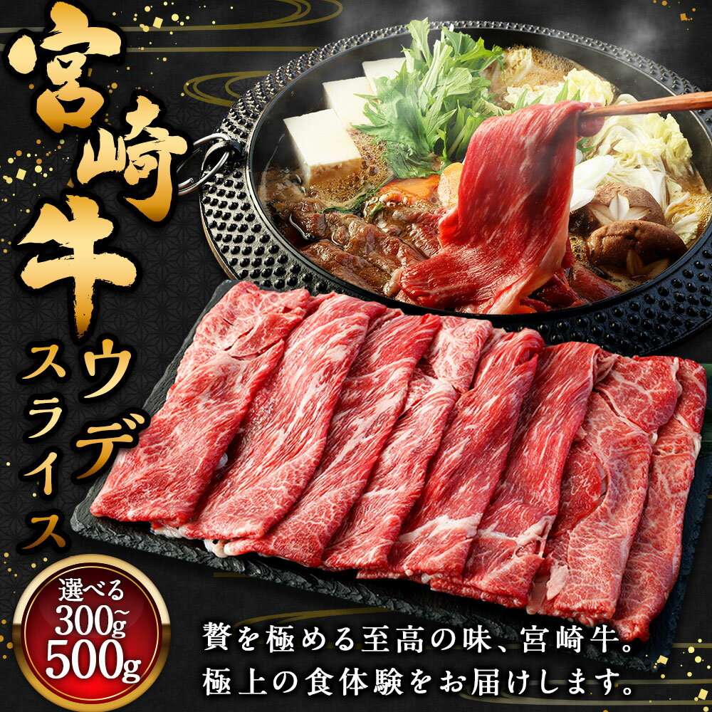 【ふるさと納税】<宮崎牛ウデスライス 300g~500g>2026年2月上旬より順次出荷 宮崎牛 ウデ肉 1パック 牛肉 和牛 肉 お肉 スライス うす切り 冷凍 お取り寄せ グルメ 宮崎県 高鍋町 送料無料 新生活応援 卒業祝い 就職祝い 入学 卒業 お花見 引越し