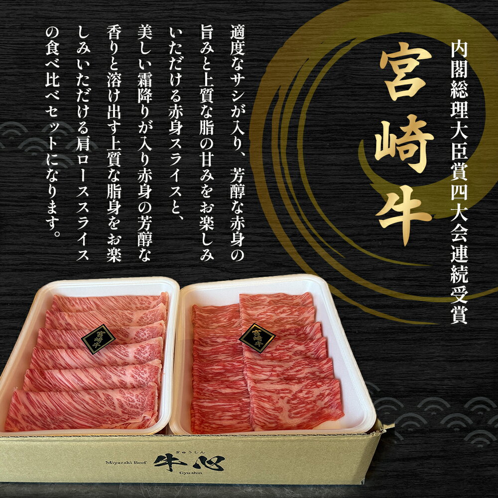 【ふるさと納税】【A4等級以上】宮崎牛赤身・ローススライス食べ比べ 800g 黒毛和牛 牛肉 赤身 すき焼き 内閣総理大臣賞 国産牛 A4 食べ比べ スライス 牛 肉 お肉 ふるさと 人気 おすすめ 贈答 ギフト お裾分け プレゼント 精肉 宮崎県 小林市 送料無料