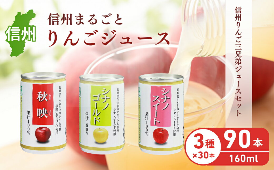 - 【ふるさと納税】リンゴジュース りんご 三兄弟 160g×30本×3品種 計90本 ストレート 缶 ジュース 果汁