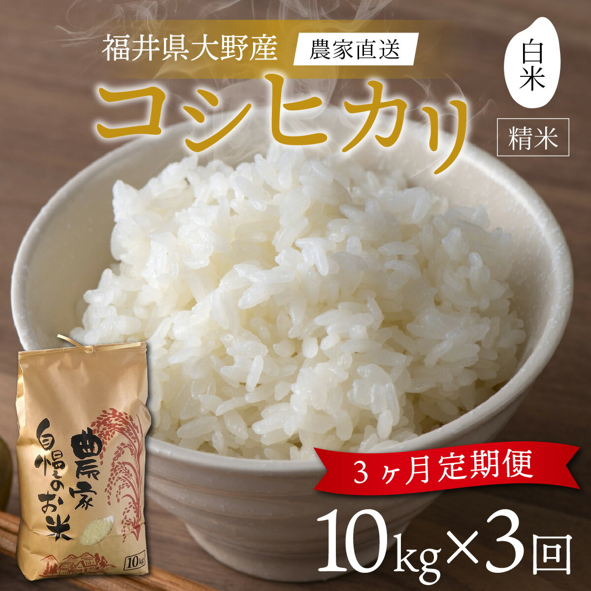 - 【ふるさと納税】【令和7年産】【3ヶ月定期便】福井県大野市産 一等米 コシヒカリ 白米 精米 10kg 農家直送 [D-013002]