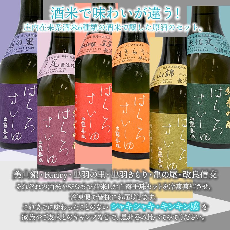 - 【ふるさと納税】【冷凍酒】白露垂珠 飲み比べ 300ml× 6種類セット K-767【冷凍発送】 美山錦・Fariry55・出羽の里・出羽きらり・亀の尾・改良信交