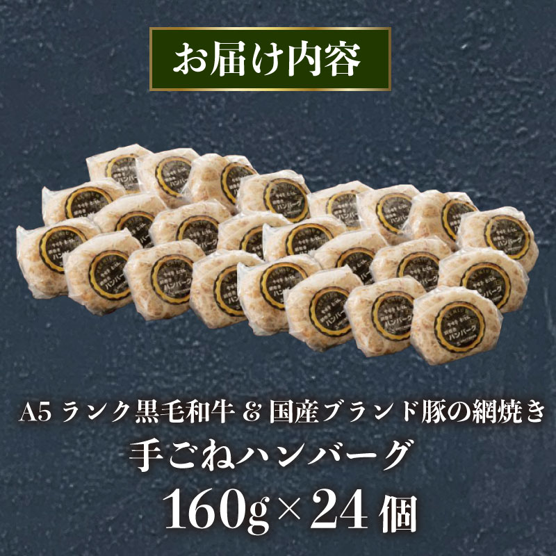 - 【ふるさと納税】 A5ランク 黒毛和牛 ブランド豚 網巻き 手ごね ハンバーグ 160g×24個 セット 個包装 冷凍 国産 牛肉 豚肉 小分け 合い挽きハンバーグ 高級 肉 惣菜 おかず 合挽き 和牛 ジューシー お取り寄せ グルメ 贈り物 ギフト ミートファクトリー 静岡県 三島市