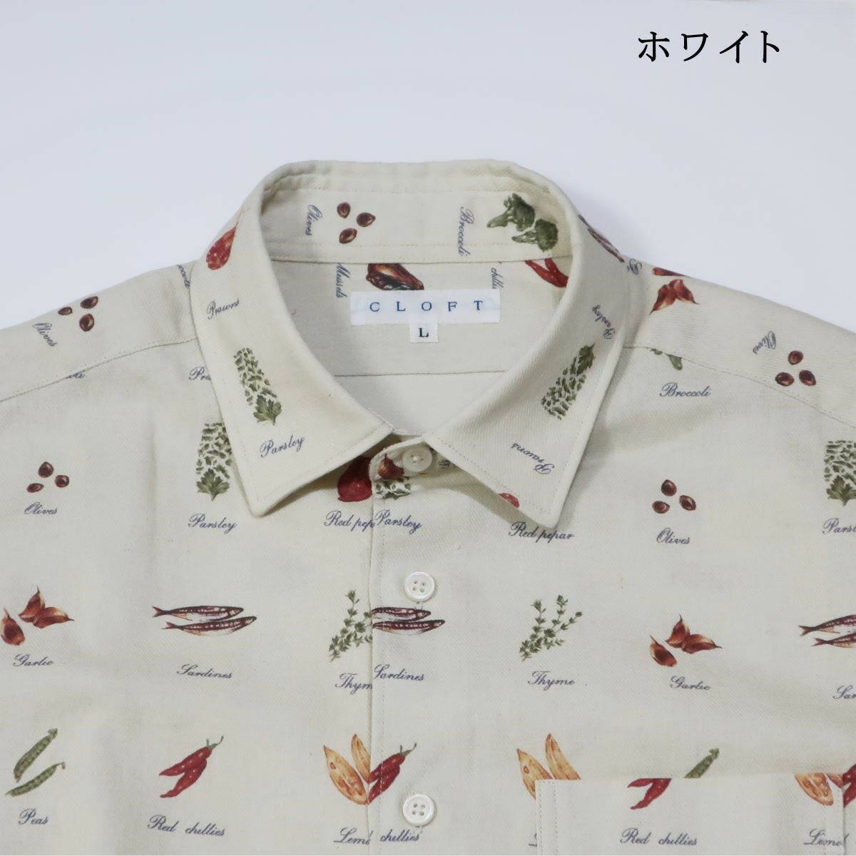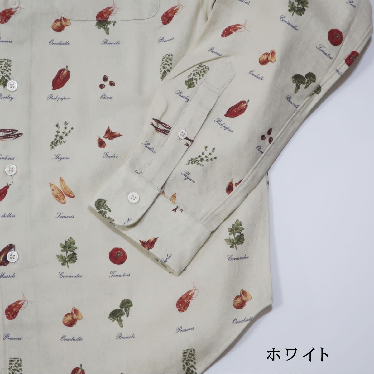 【ふるさと納税】CLOFT 長袖プリントシャツ”イタリアン食材” 綿麻ツイル(C/#12 オフ) M 長袖 シャツ Tシャツ 衣服 洋服 ファッション 綿 麻 ツイル イタリアン食材柄 食べ物モチーフ メンズ レディース 柄シャツ リネンコットン デザインシャツ 新宿 0139-012-S07-1