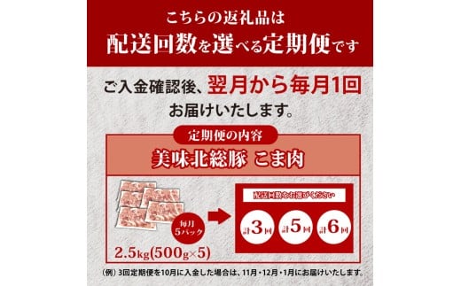 豚こま 定期便 2.5kg × 6回 美味北総豚 豚こま 小分け 真空パック 各500g 国産 千葉県産 銘柄 豚 豚こま肉 豚コマ肉 こま肉 切り落とし 冷凍 千葉県 旭市 旭食肉協同組合 ask039