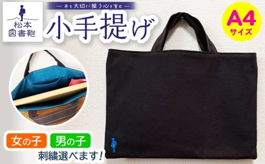 松本図書鞄 小手提げA4(濃鼠/裏地青緑)男の子 | 図書袋 図書鞄 バッグ トートバッグ A4 お買い物 散歩 布 学校 小学生 本 図書館 長野県 松本市 ふるさと納税