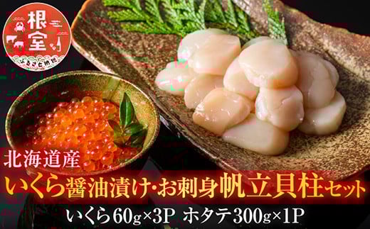 B-42084 【北海道根室産】いくら醤油漬60g×3P・お刺身帆立貝柱300g
