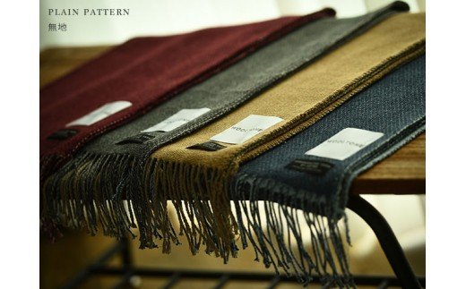 D23-02 WOOLTONE リバーシブルフリンジストール レギュラーサイズ 【BLUS(ネイビー・オフストライプ×無地ネイビー)】