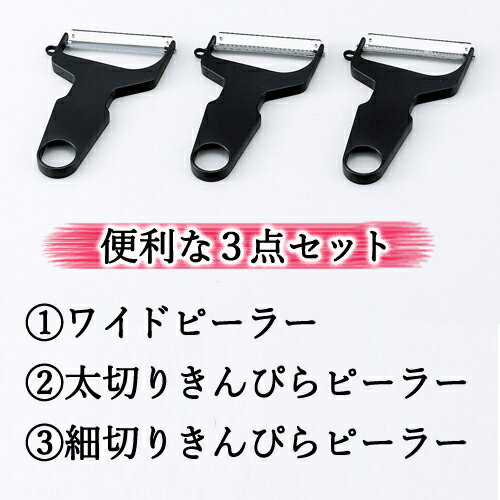 - 【ふるさと納税】【らくらくワイドピーラー3点セット】 千切り、きんぴら、サラダに大活躍 H6-18 皮むき ピーラー スライス 細切り キャベツ ごぼう T型 スライサー 皮むき器 日本製 キッチン用品 調理器具
