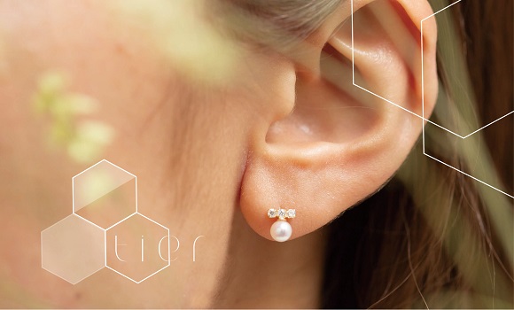 【tier】K10 デネブアコヤパール3連ダイヤピアス AD-234