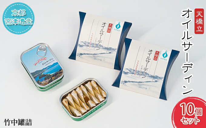 - 【ふるさと納税】天橋立 オイルサーディン 缶詰 10個セット 竹中罐詰 加工食品 魚貝類 いわし 鰯 オイル漬け 料理 つまみ トッピング 非常食 お酒 酒 土産