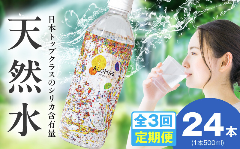 099Z357 【定期便】シリカ水 500ml 24本×全3回【ALOHAS 国産 天然水 ミネラルウォーター 高濃度シリカ 飲料水 防災 備蓄 ペットボトル 毎月配送コース】