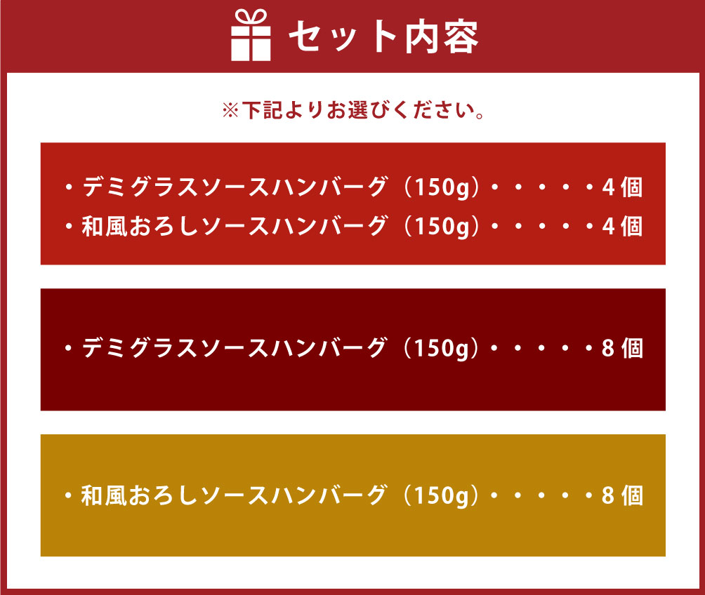 - 【ふるさと納税】【選べるセット】 手捏ねにこだわった ふわぁっふわぁっハンバーグ 150g×8個 (デミグラス 150g×4個 和風おろし 150g×4個 / デミグラス150g×8個 / 和風おろし150g×8個) 牛肉 豚肉 鶏肉 肉 冷凍 福岡県 香春町 送料無料