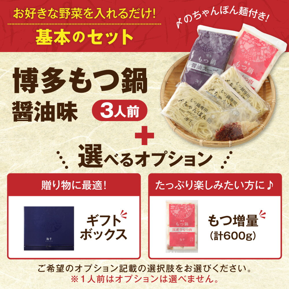 - 【ふるさと納税】【ご自宅用】博多もつ鍋 醤油味 1人前 3人前 【海千】 国産牛もつ 特製スープ ちゃんぽん麺 美味しいスープ 宗像産 送料無料