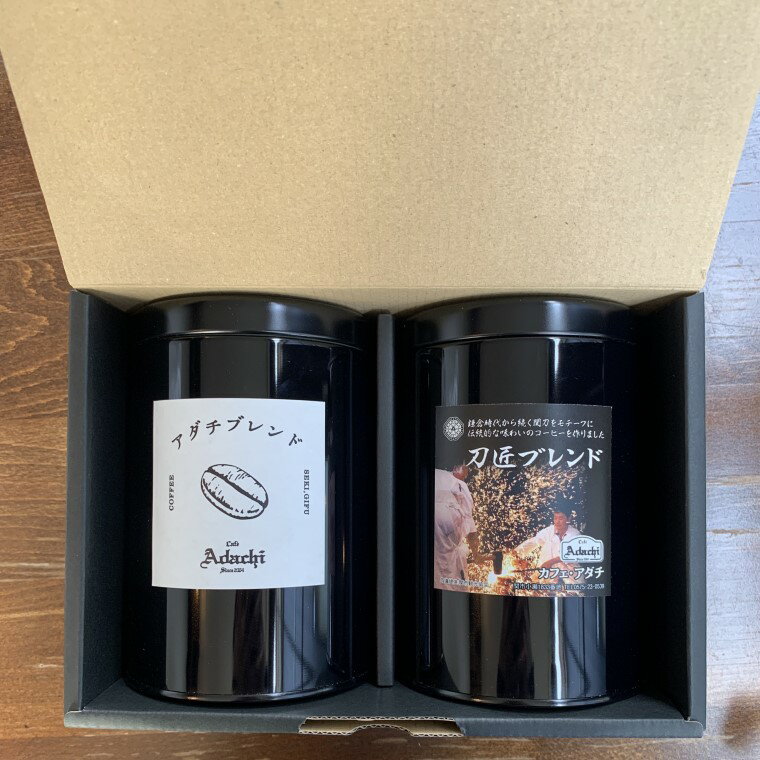 【ふるさと納税】【ギフト対応・のし対応可】カフェ・アダチ コーヒー豆 ギフト 高級缶入り 人気No.1 アダチブレンド & 刀匠ブレンド 200g×2種