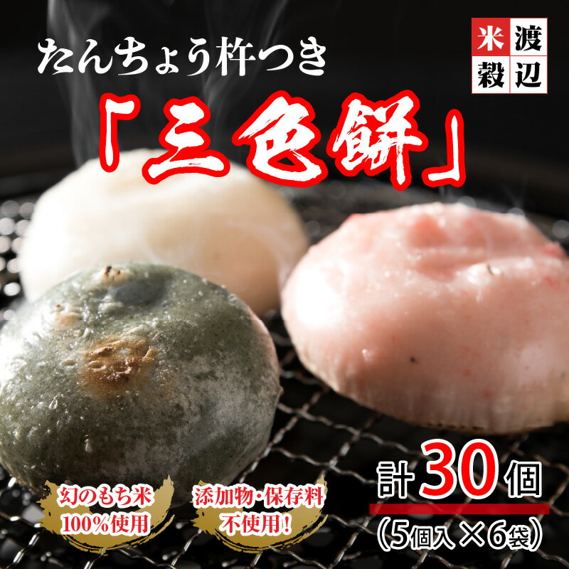 【ふるさと納税】 たんちょう杵つき「三色餅」5個 × 6パック 計30個 特別栽培もち米使用! 〜幻のもち米100%使用〜 【つきたて モチモチ 添加物・保存料不使用 お雑煮 ぜんざい おやつにも 餅 もち おもち お餅 丸もち】