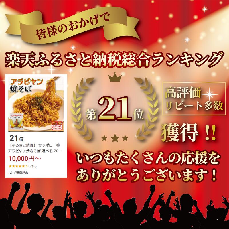 - 【ふるさと納税】 サッポロ一番 アラビヤン焼きそば 選べる 20食・30食 (4パック×5袋・6パック×5袋) 20人前 30人前 焼きそば 焼そば 袋麺 袋めん 乾麺 インスタント B級グルメ ソース付き ご当地グルメ 千葉県 旭市 ロクロクパーク