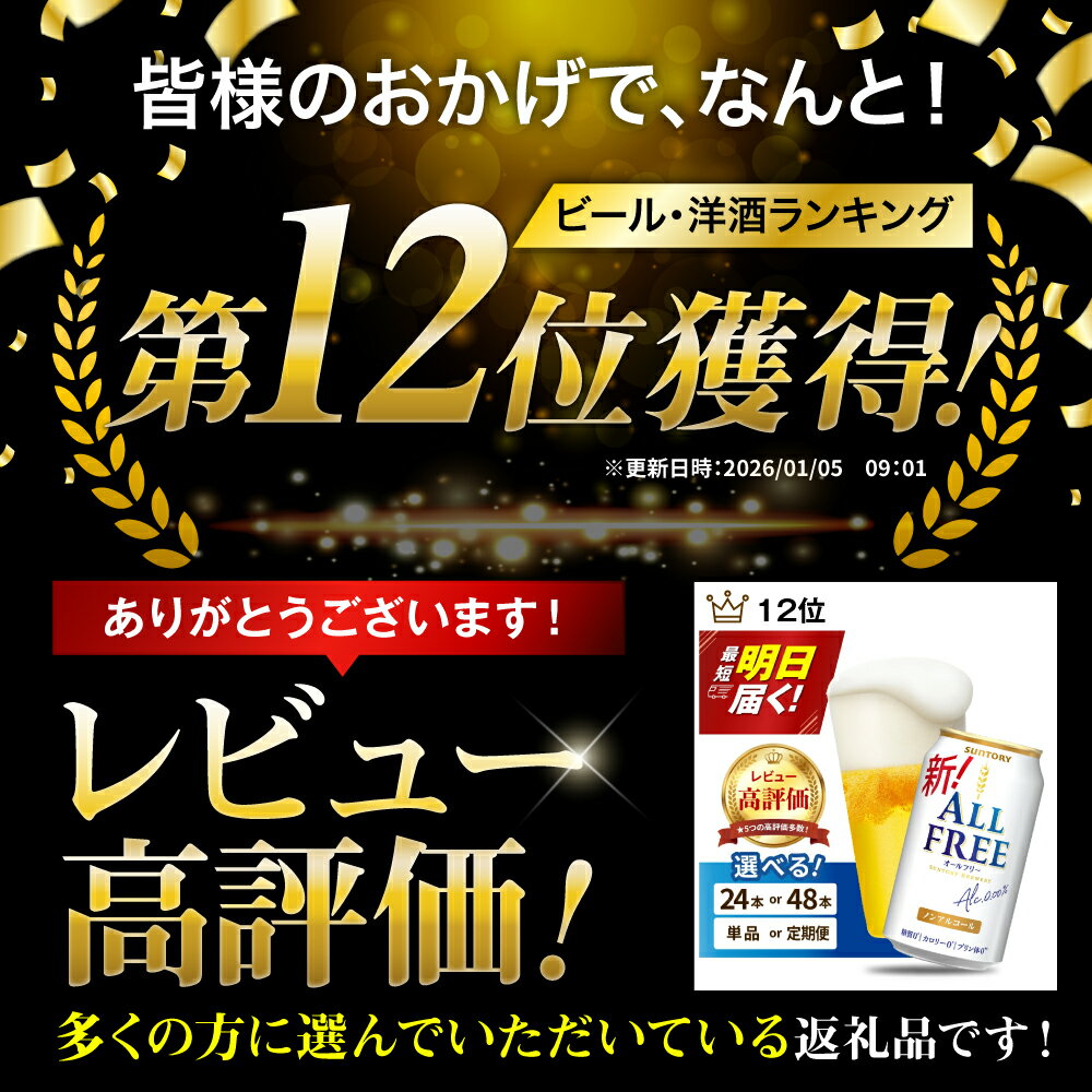 【ふるさと納税】高評価 オールフリー 350ml (選べる 1箱 2箱 / 単品 定期便 ) 24本 24缶 48本 48缶 ノンアルコールビール ノンアル アルコールフリー ノンアルコール プリン体0 糖質ゼロ カロリー0 サントリー ギフト プレゼント 贈答 セット お試し 群馬 千代田町