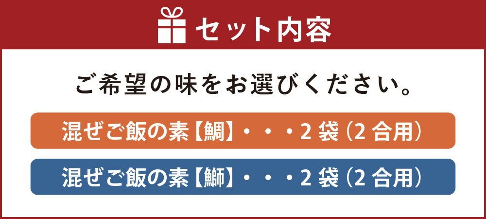 【ふるさと納税】【鯛 / 鰤】 混ぜご飯の素 2合用 2袋 / 選べる種類 鯛ご飯 鰤ご飯 混ぜご飯 炊き込みご飯 たい タイ ぶり ブリ 魚 海鮮 魚介類 海産物 海の幸 混ぜ込み 炊き込み ご飯 素 食品 加工品 調味料 九州 福岡県 遠賀町 冷凍 送料無料