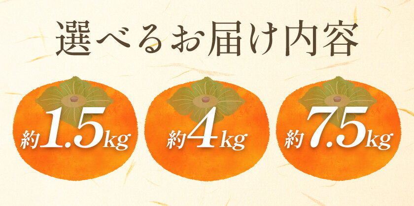 - 【ふるさと納税】柿 訳あり 旬の柿 選べる 約1.5kg 約4kg 約7.5kg《2026年10月上旬-12月末頃出荷予定(土日祝除く)》鳥取県 八頭町 送料無料 かき わけあり 果物 フルーツ 花御所柿 輝太郎柿 特産品 お取り寄せフルーツ サイズ不選別 大容量 お試し